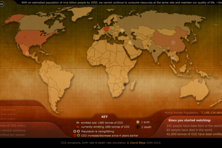 دنیا کی آبادی کے بارے میں اس ویب سائٹ پر انتہائی بہترین معلومات دی جاتی ہے وہ بھی ایسے کہ دنیا کا نقشہ آپ کے سامنے ہوتا ہے اور آپ کا ماؤس جس ملک سے گزرتا ہے نیچے اس ملک کی کل آبادی، پیدائش اور اموات کی اوسط، کاربن ڈائی آکسائیڈ کی مقدار بتاتا ہے۔ دراصل یہ ویب سائٹ ایک فرضی سسٹم ہے جس میں دنیا کے حقیقی اعدادو شمار کے ذریعے شرح اموات اور شرح پیدائش کا موازنہ دکھایا جاتا ہے۔ اس ویب سائٹ کا مقصد صاف فضا مہیا کرنے کے لیے شعور اُجاگر کرنا ہے۔