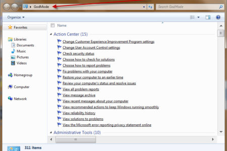یہ فولڈر ایک زبردست کنٹرول پینل جیسے "GodMode”کہتے ہیں میں بدل جائے گا۔ یہ کنٹرول پینل دیکھ کر آپ کو لگے گا کہ اب ونڈوز 7 کو استعمال کرنا اتنا آسان پہلے کبھی نہ تھا۔