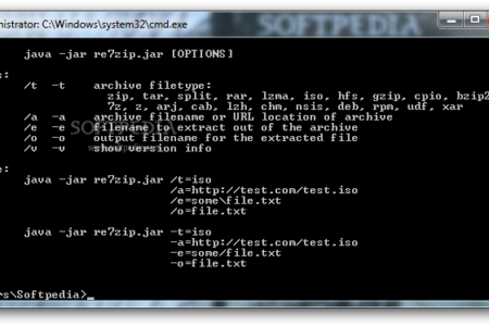 یہ سافٹ ویئر صرف زپ اور آئی ایس او تک محدود نہیں بلکہ یہ آرکائیو کے تقریباً تمام فارمیٹس کی سپورٹ کا حامل ہے۔ اس سافٹ ویئر کے ساتھ مسئلہ صرف یہ ہے کہ یہ کمانڈ لائن پر چلتا ہے۔ لیکن گھبرائیں نہیں اس کے باوجود اسے استعمال کرنا کچھ مشکل نہیں۔ اگر آپ کوئی فائل ڈاؤن لوڈ کرنا چاہیں تو آپ کو اس میں کچھ اس طرح کی کمانڈ لکھنی ہو گی: